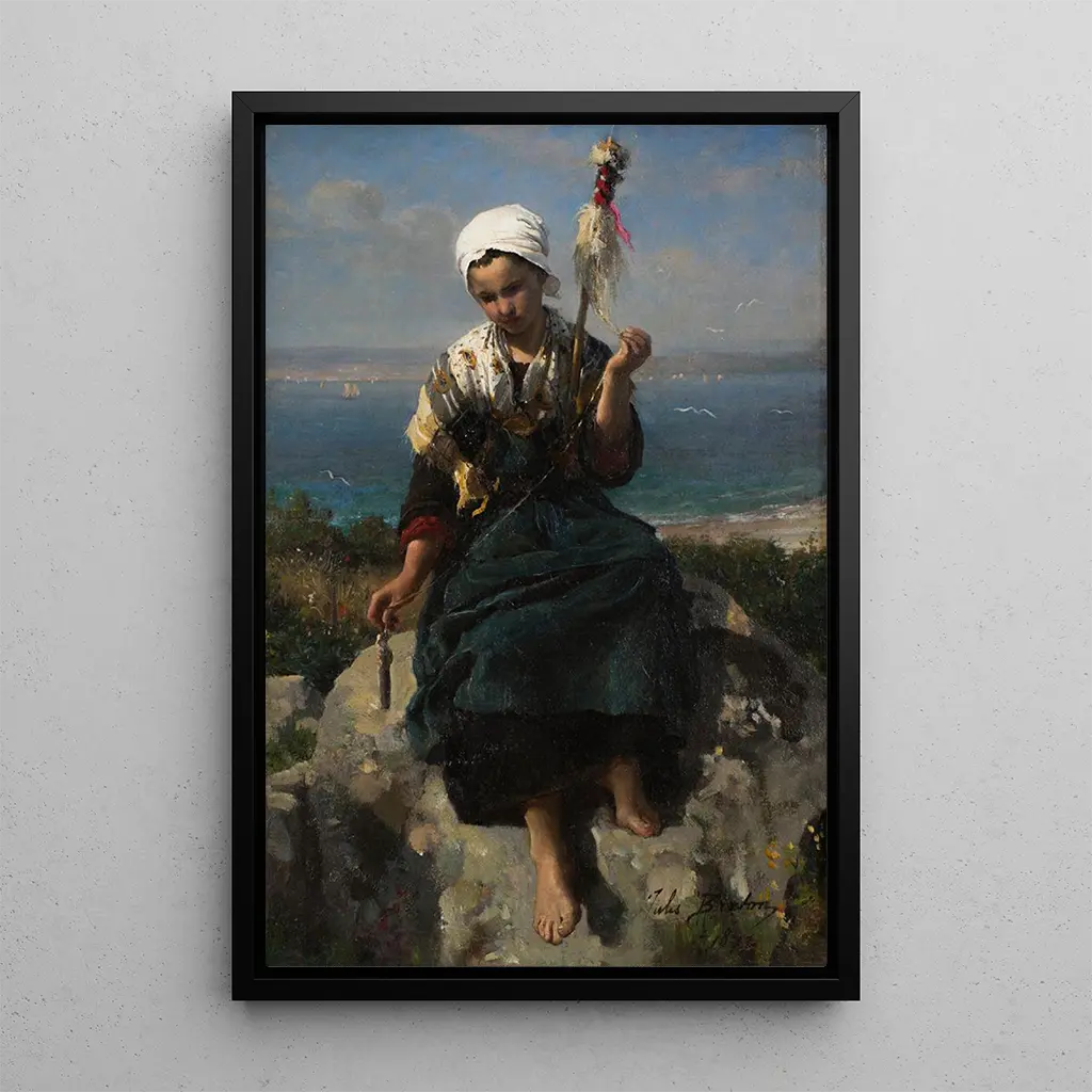 I "La fileuse de lin" tager Jules Breton os med ind i en pastoral verden fyldt med ro. Dette værk, skabt med en palette af bløde og naturlige farver, skildrer en ung kvinde fokuseret på sit arbejde med at spinde. Lys- og skyggelege skaber en varm, næsten intim atmosfære, hvor hver detalje, fra lin til teksturer på tøjet, er omhyggeligt gengivet. Den harmoniske komposition inviterer betragteren til at dykke ned i enkelheden og skønheden i det daglige liv, samtidig med at den fejrer håndværkets dygtighed.