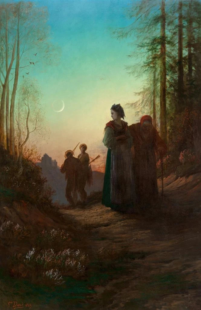 Gustave Doré, født i 1832, er en alsidig kunstner, kendt for sine kunsttryk og malerier. Hans stil, forankret i romantikken, kendetegnes ved stor udtryksfuldhed og særlig opmærksomhed på detaljer. Påvirket af tidens store mestre har han udviklet et unikt visuelt sprog, der overskrider genrer. Doré var også en pioner inden for illustration af bøger, og samarbejdede med forfattere som Dante og Cervantes. Hans værk, selvom det er varieret, forbliver dybt forbundet med naturen og landskaberne, hvilket vidner om hans kærlighed til verdens skønhed.