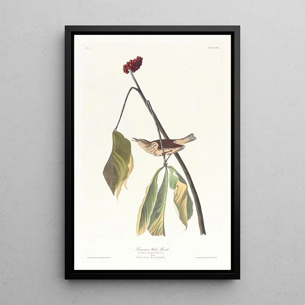 Grive de Louisiane : et smuk af den vilde natur Kunsttrykket af Grive de Louisiane, udført af John James Audubon, fremhæver den rå skønhed i den amerikanske fauna. Dette værk, malet med en bemærkelsesværdig omhu, fanger fuglen i dens naturlige habitat, omgivet af frodig vegetation. De levende farver, der spænder fra dybe grønne til varme brune nuancer, skaber en livlig og fordybende atmosfære. Teknikken fra Audubon, der kombinerer akvarel og gravure, gør det muligt at gengive hver fjer med utrolig præcision, hvilket bringer dette naturens talsmand til live. Griven, elegant siddende, virker næsten klar til at lette, og inviterer betragteren til at værdsætte roen i dens omgivelser. John James Audubon : sjælen i ornitologi John James Audubon, naturforsker og kunstner fra det 19. århundrede, er anerkendt som en af pionererne inden for ornitologi. Født i Haiti i 1785, emigrerede han til USA, hvor han udviklede en passion for fugle og deres habitat. Hans værker, herunder kunsttrykket af Grive de Louisiane, vidner om en grundig observation og dybt respekt for naturen. Audubon formåede at forene kunst og videnskab, og skabte illustrationer, der er blevet referencepunkter inden for ornitologi. Hans arbejde har ikke kun bidraget til viden om fuglearter, men har også påvirket mange kunstnere og naturforskere fra sin tid, hvilket gør ham til en ikonisk figur i den romantiske bevægelse. En dekorativ erhvervelse med mange fordele Kunsttrykket af Grive de Louisiane er et dekorativt stykke, der harmonisk integreres i forskellige rum, uanset om det er i en stue, et kontor eller et soveværelse. Dets trykkvalitet og trofasthed mod de originale farver gør det til et ideelt valg for kunst- og naturentusiaster. Dette lærred tilføjer et strejf af elegance og ro til dit hjem, samtidig med at det skaber samtaler om skønheden i faunaen. Ved at vælge dette kunsttryk, vælger du et værk, der ikke kun forskønner dit rum, men også vækker dyb respekt for naturen og kunsten, og beriger dit daglige miljø.