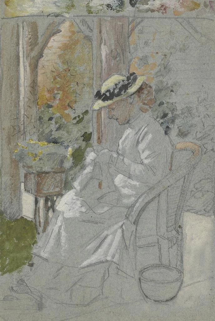 Kunsttryk Luise Scholderer på verandaen - Otto Scholderer | Kunsttryk
