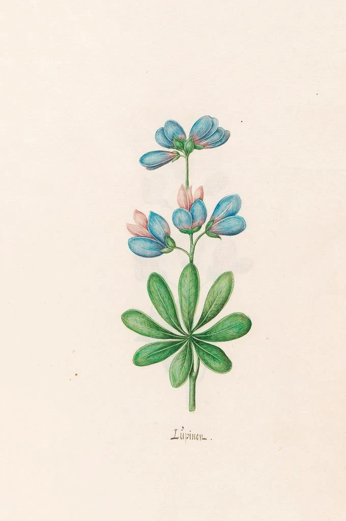 Magdalena Rosina Funck, aktiv i løbet af det 19. århundrede, er en ikonisk figur inden for blomstermaleri. Hendes arbejde er en del af en periode, hvor naturalistisk kunst voksede i omfang, og hun har formået at skille sig ud ved sin evne til at fange skønheden i blomster med stor omhu. Påvirket af tidens kunstneriske strømninger har Funck formået at forene videnskabelig observation med kunstnerisk følsomhed, hvilket har skabt værker, der taler til sjælen. Hendes lupiner vidner især om hendes talent for at udødeliggøre naturens flygtige skønhed, samtidig med at de giver anledning til refleksion over livets cyklus.