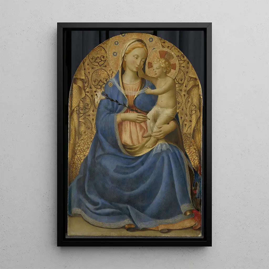 Kunsttrykket af Madone af ydmyghed er et værk, der fremkalder en mærkbar ro. I dette lærred bruger Fra Angelico bløde og beroligende farver, hvilket skaber en atmosfære af fred og fromhed. Kompositionen er centreret omkring Jomfru Maria, omgivet af engle, der synes at svæve i et helligt rum. De fine detaljer i hendes tøj og den blide udtryksfuldhed i hendes ansigt inviterer til eftertanke. Lyset, subtilt spredt, fremhæver trækene af kunsttrykket af Madone, og understreger hendes rolle som mellemmenneske mellem himlen og jorden. Dette værk er en sand hyldest til troen og ydmygheden.