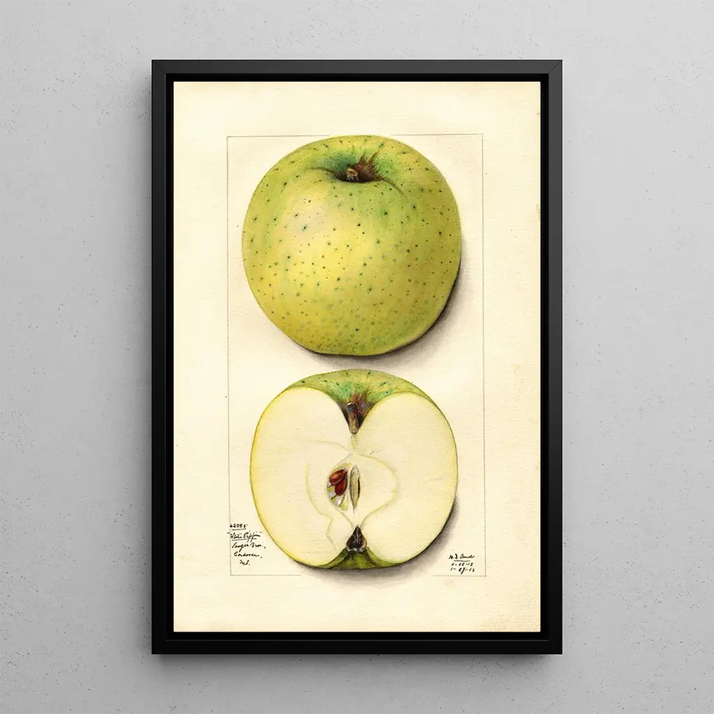 Kunsttrykket af Malus domestica White Pippin er et ideelt valg til at forskønne dit hjem. Uanset om det er i stuen, på kontoret eller i soveværelset, tilføjer dette lærred et strejf af friskhed og ro. Kvaliteten af trykket sikrer en trofast gengivelse af farver og detaljer fra det originale værk, hvilket gør det muligt at nyde dets æstetiske appel dagligt. Ved at integrere dette kunsttryk i din indretning inviterer du naturens skønhed ind i dit opholdsrum og hylder samtidig en talentfuld kunstner. Dette værk er ikke blot et dekorativt element, men også en kilde til inspiration og kontemplation.