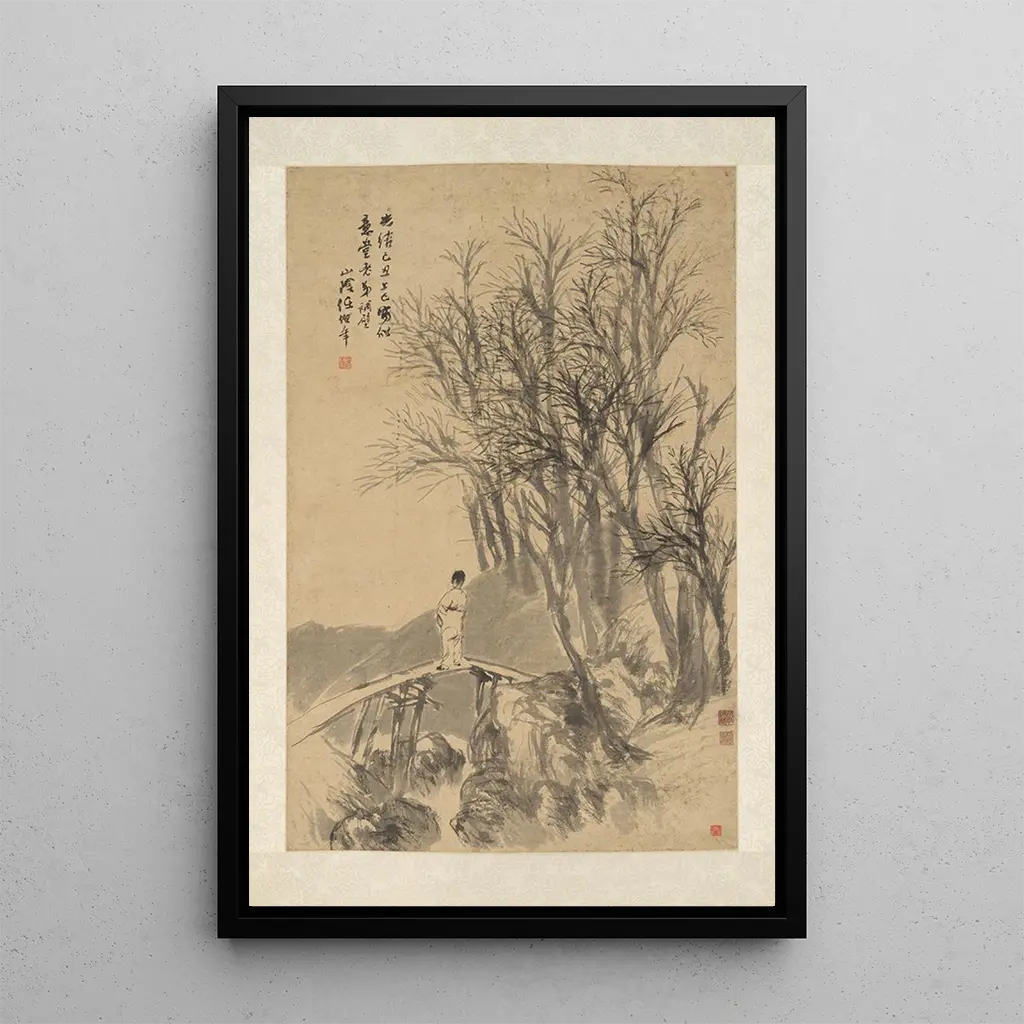 Ren Yi, også kendt som Ren Bonian, er en kinesisk kunstner fra det 19. århundrede, anerkendt for sin evne til at fange essensen af den kinesiske kultur gennem sine kunstværker. Uddannet i den klassiske tradition, har han formået at integrere moderne elementer, hvilket gør ham til en ikonisk figur inden for landskabsmaleri. "Homme sur un Pont" vidner om hans talent til at skildre scener fra dagligdagen, samtidig med at fremhæve skønheden i kinesiske landskaber. Hans arbejde er et spejl af en tid, hvor traditionel kunst og innovation eksisterede side om side, og bidrog til berigelsen af den kinesiske kunstarv.