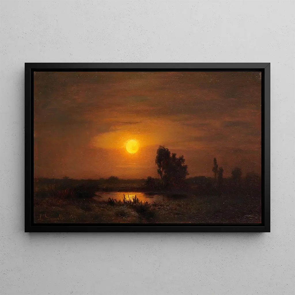 Louis Douzette, actif au XIXe siècle, est reconnu pour ses paysages poétiques et ses scènes de la vie quotidienne. Influencé par le mouvement impressionniste, il s'est spécialisé dans la capture des effets de lumière et des atmosphères changeantes. Lever de moon sur l'étang illustre parfaitement son talent pour représenter la nature dans toute sa splendeur. À une époque où l'art se libère des conventions académiques, Douzette se démarque par sa capacité à évoquer des émotions à travers des paysages simples mais évocateurs. Son œuvre continue d'être célébrée pour sa beauté et sa sensibilité.