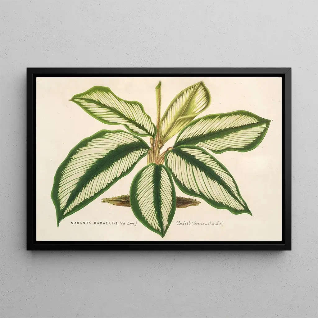 Den kunsttryk "Maranta Baraquinii" af Charles Antoine Lemaire fremstår som en ægte fejring af biodiversiteten. Dette botaniske værk, rigt på farver og detaljer, fremhæver den unikke skønhed af planten Maranta, kendt for sine fascinerende mønstre på bladene. De livlige nuancer af grøn, rosa og creme blander sig harmonisk, hvilket skaber en levende og dynamisk atmosfære. Lemaire, med sin præcise teknik, formår at fange essensen af denne plante og inviterer betragteren til at dykke ned i den delikate botaniske verden.