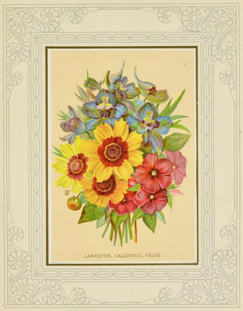Kunsttryk | Delphinium, calliopsis, phlox - Marcus Ward & Co.