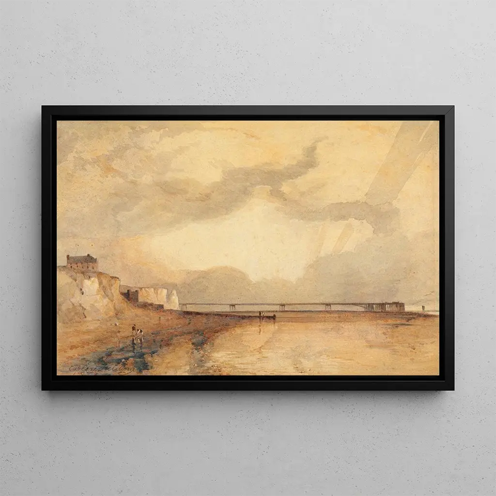 Kunsttrykket af Marine, Brighton Pier tager os med til havets kant, hvor horisonten smelter sammen med himlen. Nuancerne af blå og grøn blander sig for at skabe en beroligende atmosfære, mens lysrefleksionerne fremkalder solens glans på vandet. Copley Fielding, landskabsmalerens mester, bruger en oliemalingsteknik, der bringer bølgerne og molen til live, hvilket gør hver detalje næsten håndgribelig. Værket inviterer til eftertanke og giver beskueren mulighed for at drømme sig væk i dette fredelige maleri.