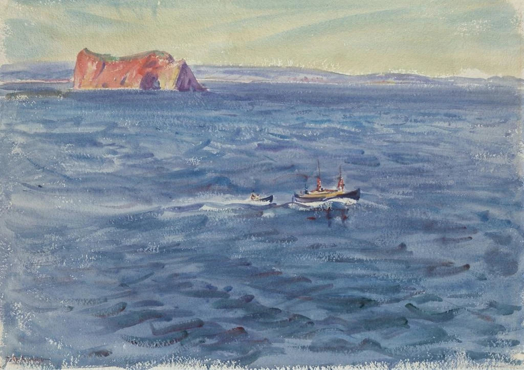 Maritimt landskab med båd og klippe - Dodge MacKnight
