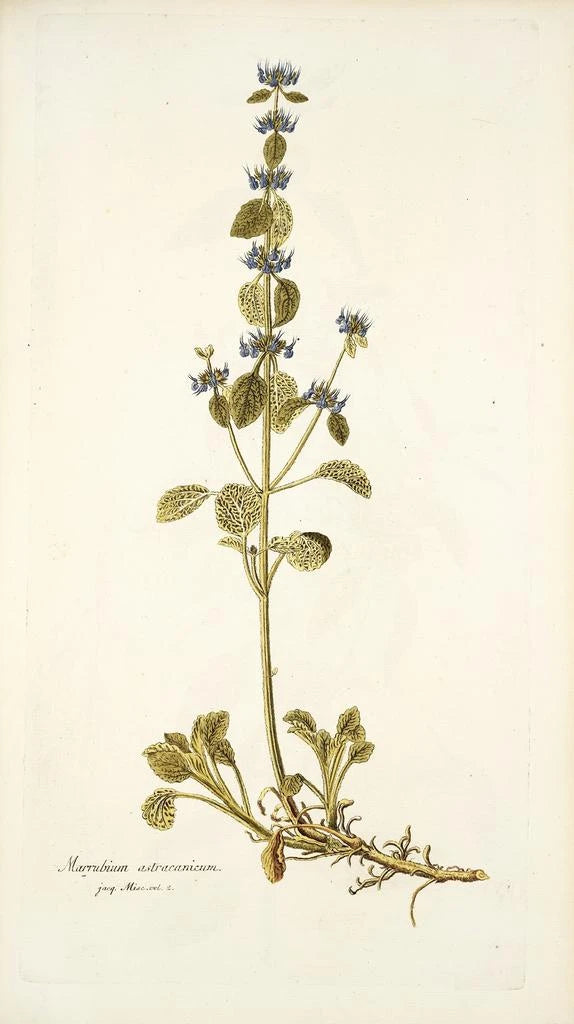 Nikolaus Joseph Freiherr von Jacquin, botaniker og illustrator fra det 18. århundrede, er anerkendt for sine bidrag til videnskaben og kunsten. Hans rejser i Sydamerika og Caribien har beriget hans viden om planter, som han formåede at gengive med præcision i sine værker. Marrubium astracanicum, ligesom andre af hans illustrationer, vidner om hans engagement i at dokumentere biodiversiteten. Ved at kombinere videnskabelig stringens og kunstnerisk følsomhed har Jacquin efterladt en værdifuld arv, der fortsat påvirker nutidens kunstnere og botaniker.