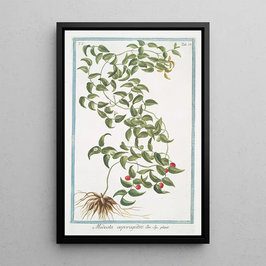 Kunsttrykket af "Medeola asparagoides" er et velvalgt dekorativt valg for alle naturelskere. Uanset om du ønsker at forskønne din stue, dit kontor eller dit soveværelse, tilføjer dette kunsttryk et strejf af ro og elegance. Dets trykkvalitet sikrer en bemærkelsesværdig trofasthed til detaljerne i det originale værk, samtidig med at det har en tydelig æstetisk appel. Ved at integrere dette lærred i din indretning skaber du et inspirerende og beroligende rum, hvor naturens skønhed altid er til stede.