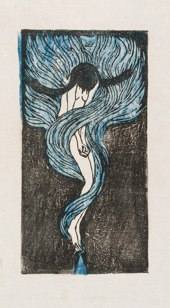 Kunsttrykket Melankoli af Tanaka Kyōkichi er et værk, der inviterer til refleksion. De bløde nuancer og blå toner fremkalder en atmosfære af nostalgi, mens de delikate og flydende former skaber en beroligende bevægelse. Kunstnerens teknik, der kombinerer akvarel og blæk, giver liv til drømmeagtige landskaber, hvor hver detalje synes at fortælle en historie. Værket fanger essensen af den menneskelige følelse og fører seeren ind i et univers, hvor melankoli bliver en kilde til skønhed.