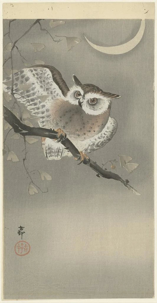 Kunsttryk | Mellemøjeugle i en ginkgo - Ohara Koson