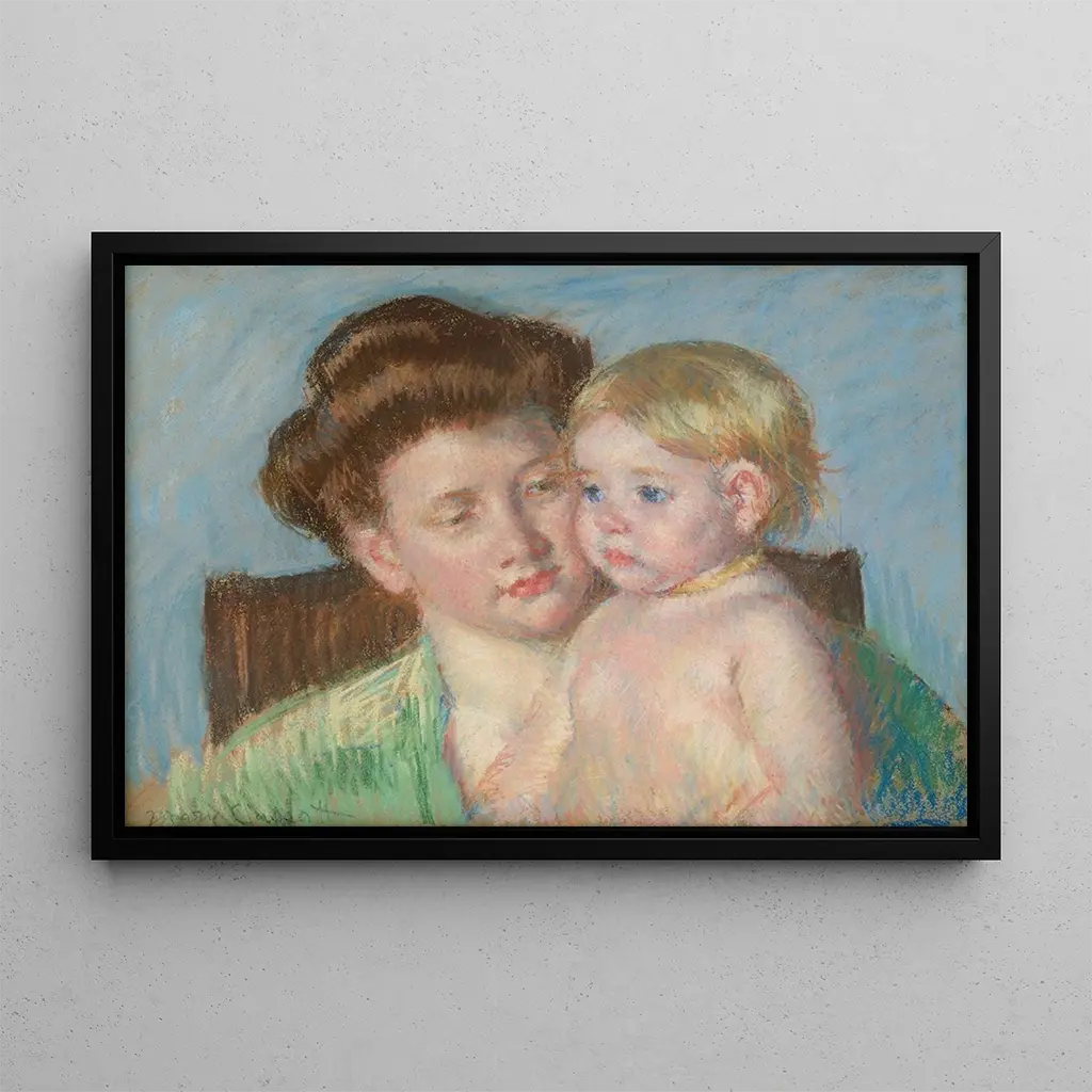 I dette ikoniske værk fanger Mary Cassatt ømheden i et intimt øjeblik mellem en mor og hendes barn. De bløde farver, domineret af pastelnuancer, skaber en varm og beroligende atmosfære. Cassatts impressionistiske teknik, med sine flydende penselstrøg, giver liv til figurerne samtidig med, at den bevarer en vis intimitet. Det fælles blik mellem mor og barn antyder en dyb forbindelse og inviterer betragteren til at træde ind i dette følelsesmæssige rede. Dette kunsttryk af Mère et enfant er en sand hyldest til moderskabet, der fejrer skønheden i familiebånd.