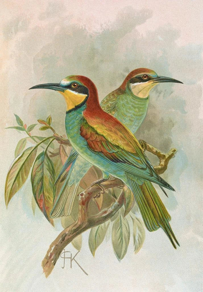 Johann Friedrich Naumann, aktiv i det 19. århundrede, er kendt for sine bidrag til ornitologi og naturalistisk kunst. Påvirket af datidens videnskabelige opdagelser formåede han at forene videnskabelig præcision med kunstnerisk følsomhed. Hans værker, herunder Merops apiaster, vidner om hans engagement i trofast at afbilde fuglefaunen. Naumann har ikke blot dokumenteret arterne, men også øget offentlighedens bevidsthed om naturens skønhed, hvilket gør ham til en vigtig figur inden for kunst og videnskab.