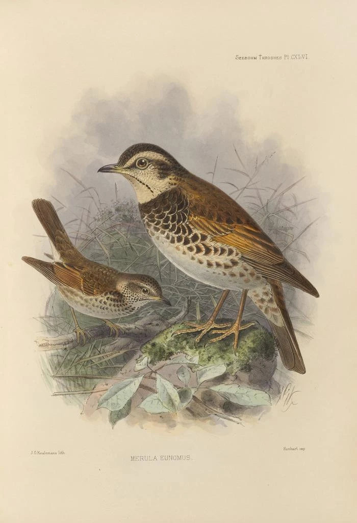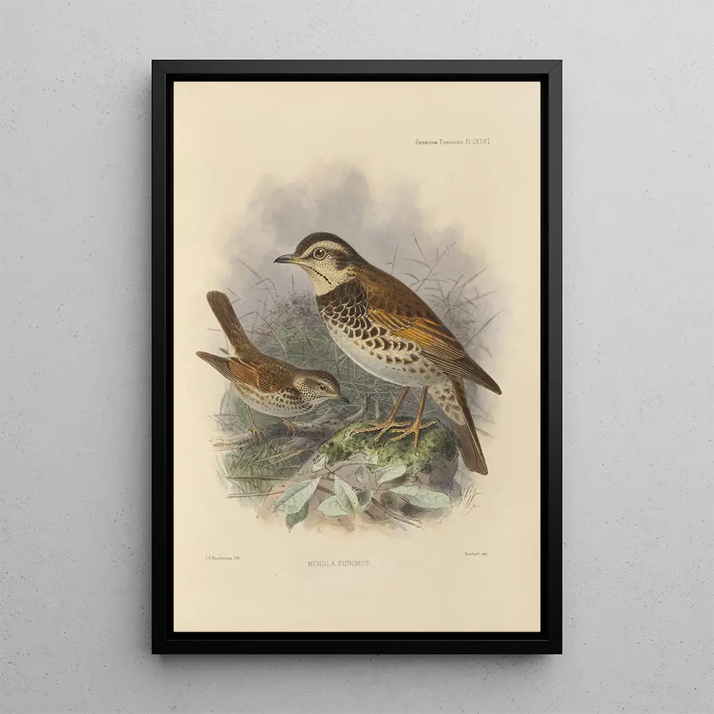 Henry Seebohm, naturalist og ornitolog fra det XIX. århundrede, formåede at forene sin passion for fugle med sit kunstneriske talent. Hans værker, herunder kunsttrykket af Merula Eunomus, vidner om en tid, hvor observation af naturen var både videnskabelig og æstetisk. Påvirket af tidens opdagelser bidrog Seebohm til dokumentationen af fuglearter, mens han samtidig skildrede dem med bemærkelsesværdig præcision. Hans arbejde er essentielt for at forstå biodiversiteten i hans tid og vigtigheden af artsbeskyttelse, hvilket gør ham til en uundværlig figur i den naturalistiske kunstverden.