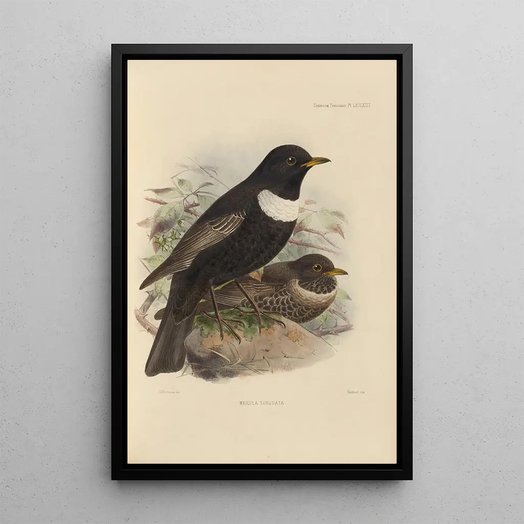 Valget af kunsttrykket af Merula Torquata er et valg, der vil forbedre din indretning. Uanset om det er i et arbejdsrum eller et afslapningshjørne, vil dette lærred tilføre et strejf af levende natur. Dets trykkvalitet sikrer en bemærkelsesværdig trofasthed mod det originale værk, hvilket gør hvert blik til et øjeblik af eftertanke. Med sin fængslende æstetik er dette kunsttryk det perfekte valg for dem, der ønsker at kombinere kunst og natur i deres hjem.