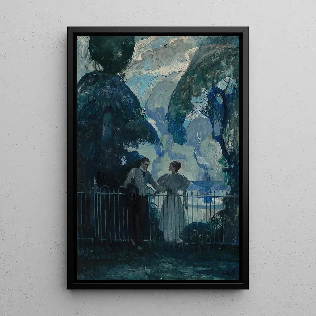Kunsttrykket "Le Midlandais" af Frank Street skildrer en idyllisk scene, hvor fredelighed råder. Kompositionen, afbalanceret og harmonisk, fremhæver et grønt landskab badet i blid og varm belysning. Farverne, primært grønne og brune, fremkalder naturens skønhed i al sin pragt. Street's teknik, der kombinerer realisme og impressionisme, giver mulighed for at mærke den fredelige atmosfære på landet. Personerne, godt integreret i deres omgivelser, synes at leve i perfekt harmoni med naturen omkring dem, hvilket inviterer betragteren til at fordybe sig i denne enkle og ægte livsscene.