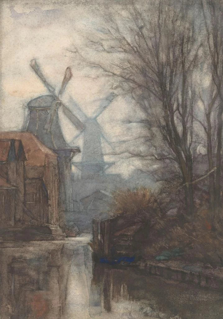 Maleri Moulins le long d'un canal - Jan Veth | Kunsttryk Source: Tableau Moulins le long d'un canal - Jan Veth | Reproduction