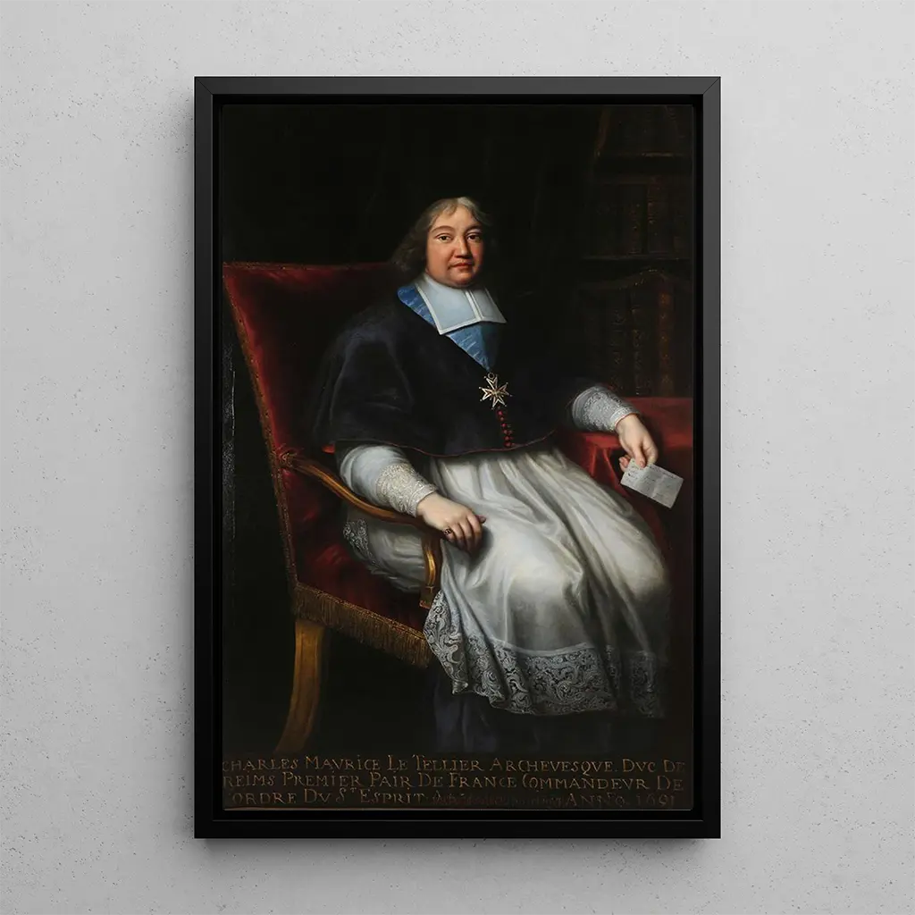 Kunsttrykket af Monseigneur Charles-Maurice Le Tellier, udført af Pierre Mignard, afslører en person præget af majestæt. Maleriet, med sine rige farver og omhyggelige detaljer, fanger selve essensen af aristokratiet i det 17. århundrede. De overdådige foldninger i den kirkelige dragt, fremhævet med gyldne nuancer, står i kontrast til den mørke baggrund, der understreger den imponerende figur af prelaten. Mignard, mester i portrætkunsten, formår at formidle en atmosfære af respekt og autoritet, hvilket inviterer betragteren til at beundre den åndelige og verdslige magt hos sit motiv.