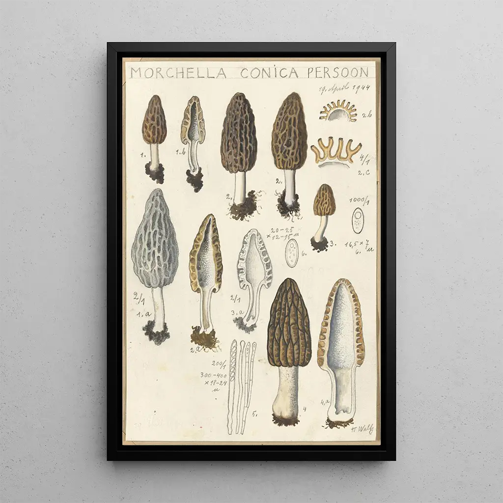 Kunsttrykket af 'Morchella conica person' er en perfekt tilføjelse til at forskønne dit hjem, uanset om det er i en stue, et kontor eller et soveværelse. Den enestående udskriftskvalitet og trofasthed mod det originale værk sikrer en berigende visuel oplevelse. Dette lærred, med sin unikke æstetik, bringer et strejf af natur og ro til din indretning, samtidig med at det vækker interesse og nysgerrighed. Ved at vælge dette lærred giver du dit rum en kunstnerisk dimension, der fejrer skønheden i svampe og den vilde livsrigdom.