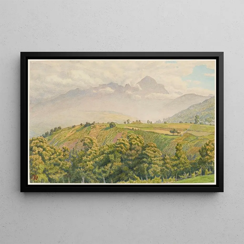 Dans cette kunsttryk de Matin brumeux sur le Charvin, Henri Rivière nous transporte au cœur d'un paysage montagnard enveloppé d'une douce brume. Les nuances de bleu et de gris se mêlent harmonieusement, créant une atmosphère à la fois sereine og mystisk. La technique du pastel, utilisée avec finesse, permet de capturer la lumière diffuse de l'aube, tandis que les contours flous des montagnes ajoutent une dimension éthérée à l'œuvre. Rivière, en véritable poète de la nature, nous invite à contempler ce moment fugace où le jour se lève, révélant la beauté sauvage des Alpes.