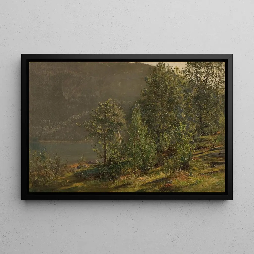Reproduktionen af "Atmosfære om morgenen i Hardanger" er et ideelt dekorativt valg til forskellige rum såsom stuen, kontoret eller soveværelset. Dets æstetiske tiltrækningskraft og reproduktionskvalitet gør dette lærred til et centralt element, der fanger opmærksomheden og vækker refleksion. Farvernes blidhed og scenens ro giver et strejf af ro i dit hjem, samtidig med at det åbner et vindue til Norges naturlige skønhed. Ved at integrere dette værk i din indretning skaber du et beroligende og inspirerende miljø.