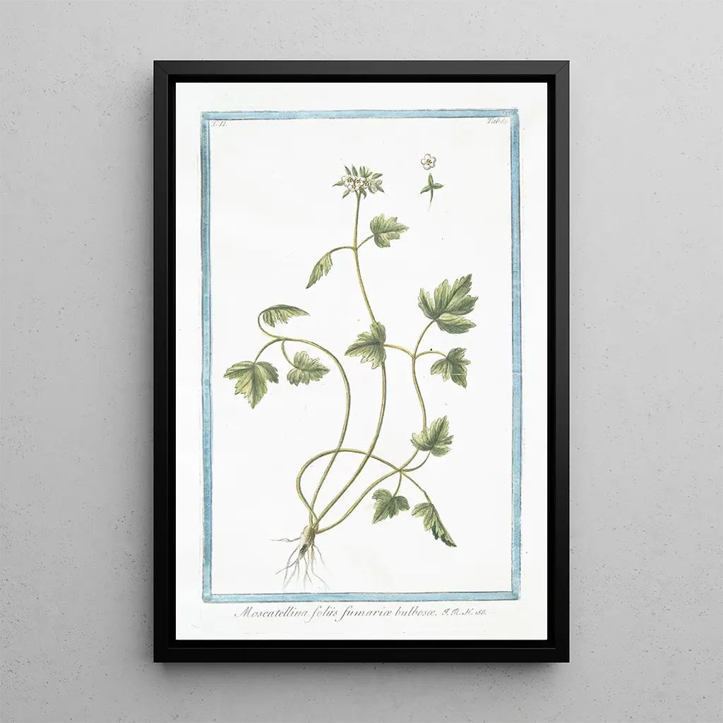 Kunsttrykket af maleriet Moscattelina foliis fumari bulbos er et ideelt dekorativt stykke til at berige dit hjem, uanset om det er i en stue, et kontor eller et soveværelse. Dets trykkvalitet sikrer en bemærkelsesværdig trofasthed over for farver og detaljer i det originale værk, hvilket tilføjer et strejf af elegance og friskhed til din indretning. Det æstetiske tiltrækningskraft ved dette lærred ligger i dets evne til at fremkalde den naturlige skønhed, samtidig med at det harmonisk integreres i forskellige indretningstyper. Giv dig selv dette værk for at forvandle dit rum til et sted, hvor naturen og kunsten mødes.