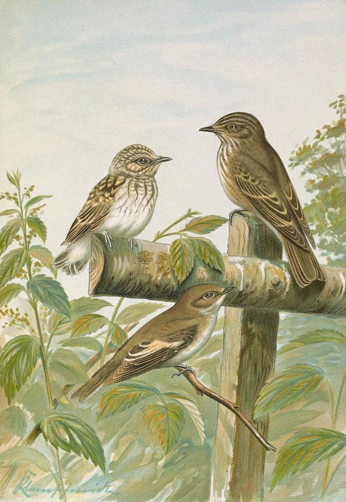 Maleri Muscicapa grisola Muscicapa atricapilla - Johann Friedrich Naumann | Kunsttryk