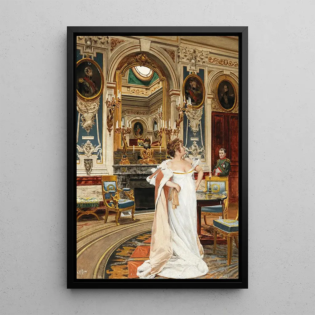 Kunsttrykket af "Napoléon og Joséphine" er en elegant tilføjelse til enhver indretning, hvad enten det er i stuen, på kontoret eller i soveværelset. Dens kvalitet som kunsttryk sikrer en imponerende trofasthed over for de originale detaljer, hvilket gør det muligt at nyde det æstetiske udtryk uden at gå på kompromis med stilarten i dit rum. Dette kunsttryk, med sin romantiske og historiske stemning, vækker nysgerrighed og samtaler, samtidig med at det tilføjer et strejf af sofistikation. Ved at vælge dette lærred, får du et stykke, der kombinerer skønhed og kultur, og beriger dermed dit livsmiljø.