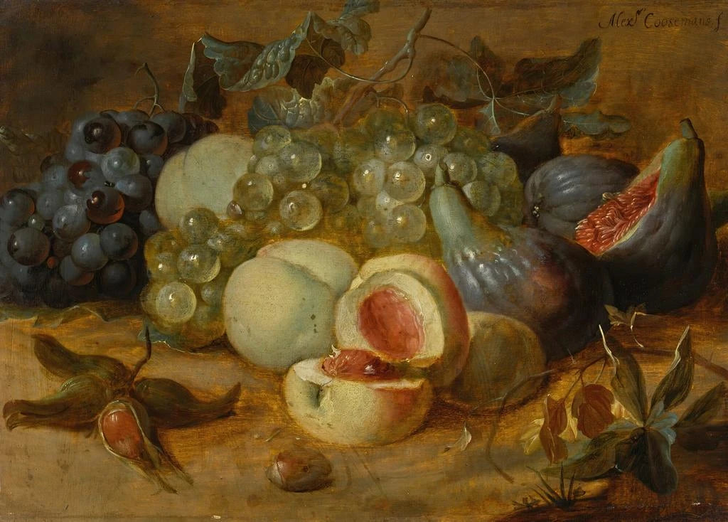 Alexander Coosemans, aktiv i det 17. århundrede, er kendt for sine kunsttryk, der fanger rigdommen og mangfoldigheden af jordens produkter. Påvirket af store flamske mestre som Jan Davidsz de Heem, udvikler han en stil præget af omhyggelig opmærksomhed på detaljer og en palette af livlige farver. Hans værker, ofte bestilt af aristokrater, vidner om vigtigheden af kunsttryk i barokkunsten, hvor hvert element er fyldt med symbolik og betydning. Coosemans formåede at etablere sig i et konkurrencepræget kunstmiljø og efterlader sig en arv, der fortsat inspirerer kunstelskere.