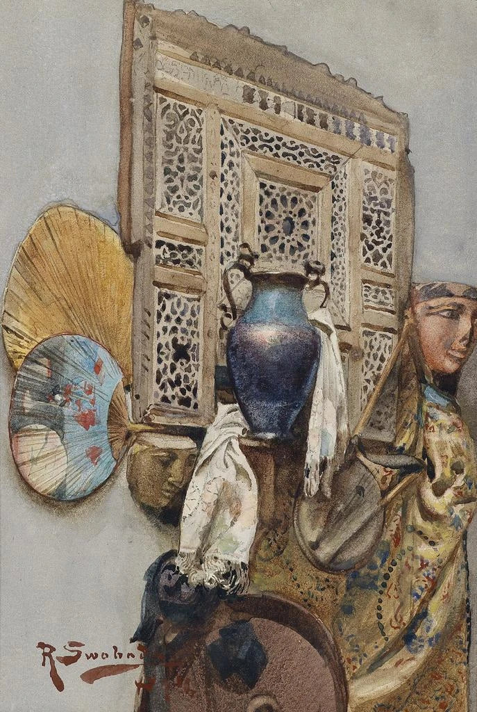 Rudolf Swoboda, aktiv i slutningen af det 19. århundrede, er en kunstner, hvis arbejde er en del af realisme-bevægelsen. Påvirket af sine rejser i Orienten, har han formået at integrere forskellige kulturelle elementer i sine værker, hvilket vidner om en umættelig nysgerrighed for verdens kunstneriske traditioner. Hans evne til at fange lyset og teksturen af genstande har givet ham anerkendelse i sin tids kunstmiljø. Swoboda har formået at forene sit europæiske arv med orientalske inspirationer, hvilket skaber en unik stil, der fortsat påvirker nutidens kunstnere.