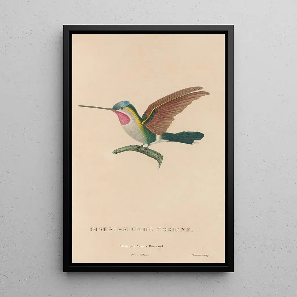 Kunsttrykket Histoire naturelle des oiseaux-mouches Pl02 er en værdifuld tilføjelse til enhver kunstsamling. Perfekt til at dekorere en stue, et kontor eller et værelse, bringer dette lærred et strejf af natur og farve til dit rum. Dets trykkvalitet sikrer en bemærkelsesværdig trofasthed til detaljerne og farverne i det originale værk, hvilket giver en uomgængelig visuel appel. Ved at vælge dette kunsttryk skaber du et beroligende og inspirerende miljø, samtidig med at du fejrer skønheden i fuglenes fauna. Det er et stykke, der vil tiltale kunst- og naturentusiaster og samtidig berige din indretning.