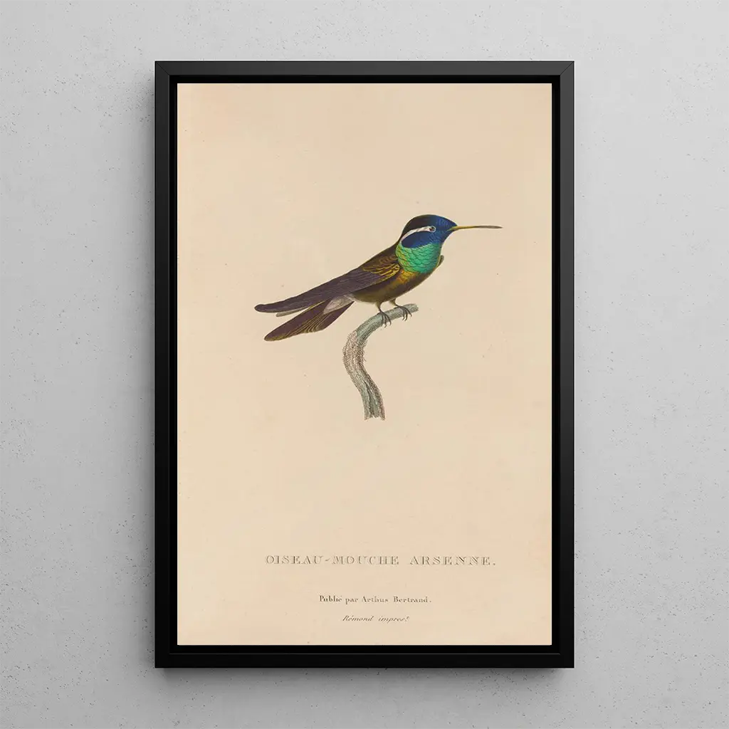 Kunsttrykket Histoire naturelle des oiseaux-mouches Pl09 er et klogt dekorativt valg til at forskønne dit hjem. Uanset om det er i stuen, på kontoret eller i soveværelset, tilføjer dette lærred et strejf af farve og liv. Udskriftskvaliteten sikrer en enestående nøjagtighed i detaljerne i det originale værk, samtidig med at det har en raffineret æstetik. Ved at integrere dette kunsttryk i din indretning skaber du et inspirerende og varmt rum, samtidig med at du hylder naturens skønhed og René Primevère Lessons kunst.