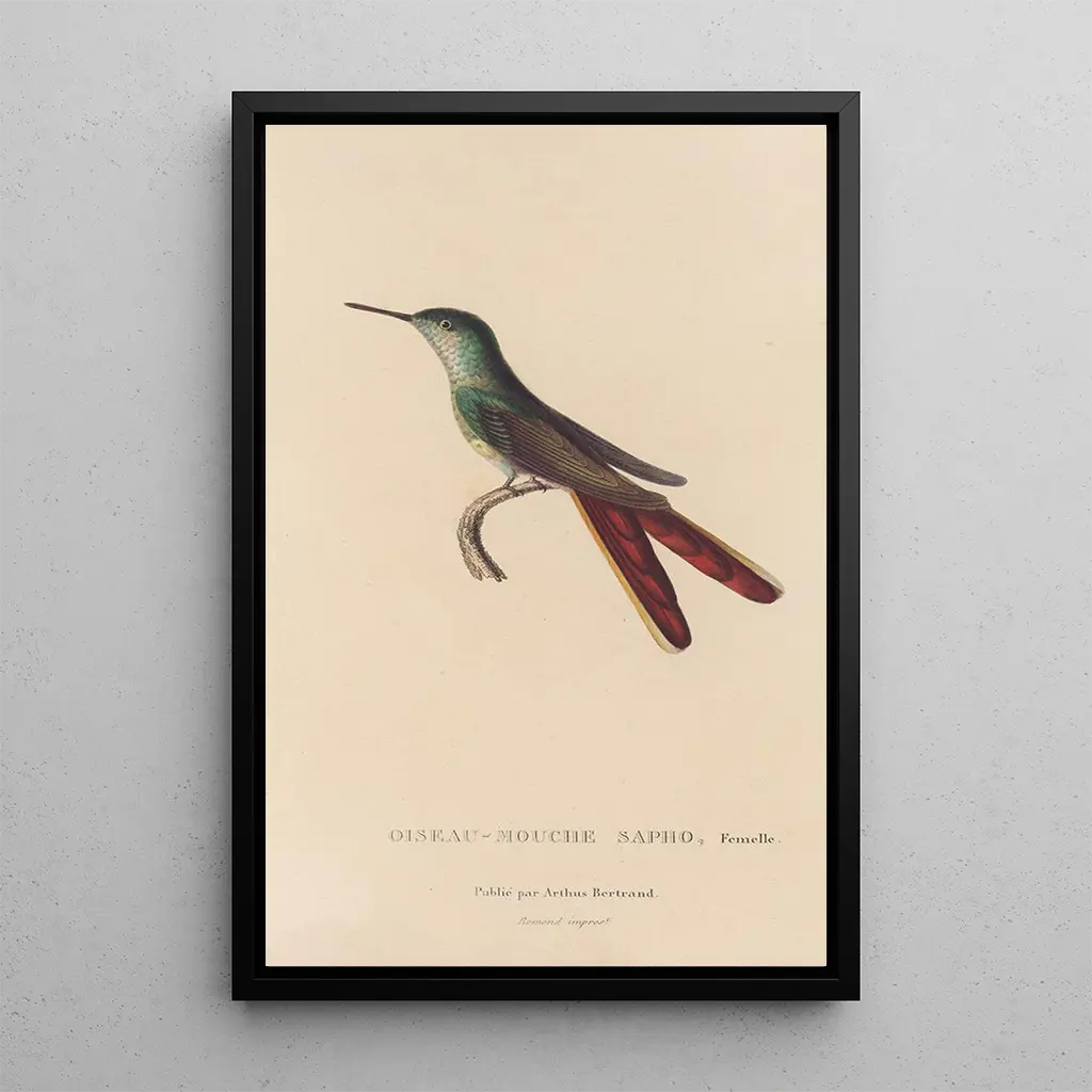 Kunsttrykket af maleriet Histoire naturelle des oiseaux-mouches Pl28 er et stykke, der vil tilføre elegance til din indretning. Uanset om det er i en stue, et kontor eller et soveværelse, tiltrækker dette lærred opmærksomhed og vækker beundring. Dets trykkvalitet sikrer en bemærkelsesværdig trofasthed over for farver og detaljer i det originale værk, hvilket garanterer en stærk visuel effekt. Ved at vælge dette kunsttryk beriger du dit rum med et kunstværk, der fejrer naturens skønhed, samtidig med at det tilføjer en friskhed og dynamik til dit hjem.