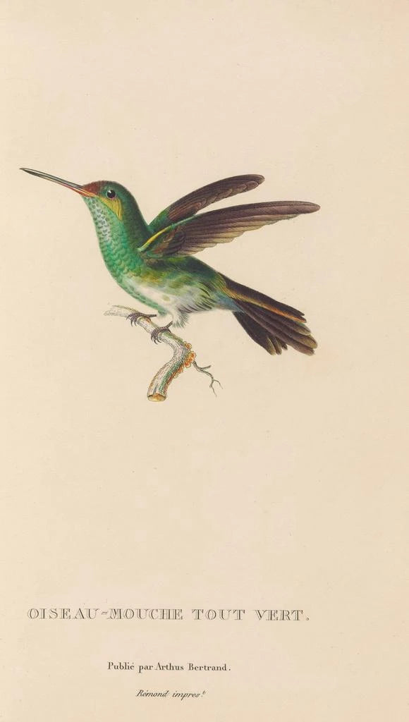 René Primevère Lesson, aktiv i det 19. århundrede, er anerkendt for sine betydningsfulde bidrag til ornitologi og naturalistisk kunst. Hans passion for fuglene og hans ønske om at afbilde dem troværdigt har ført til skabelsen af ikoniske værker, herunder "Histoire naturelle des oiseaux-mouches Pl76". Påvirket af de videnskabelige opdagelser i sin tid, formåede Lesson at forene præcision og æstetik, hvilket hylder naturens skønhed. Som medlem af Institut de France har han efterladt en varig arv, der inspirerer både forskere og kunstnere gennem sine detaljerede og poetiske illustrationer.