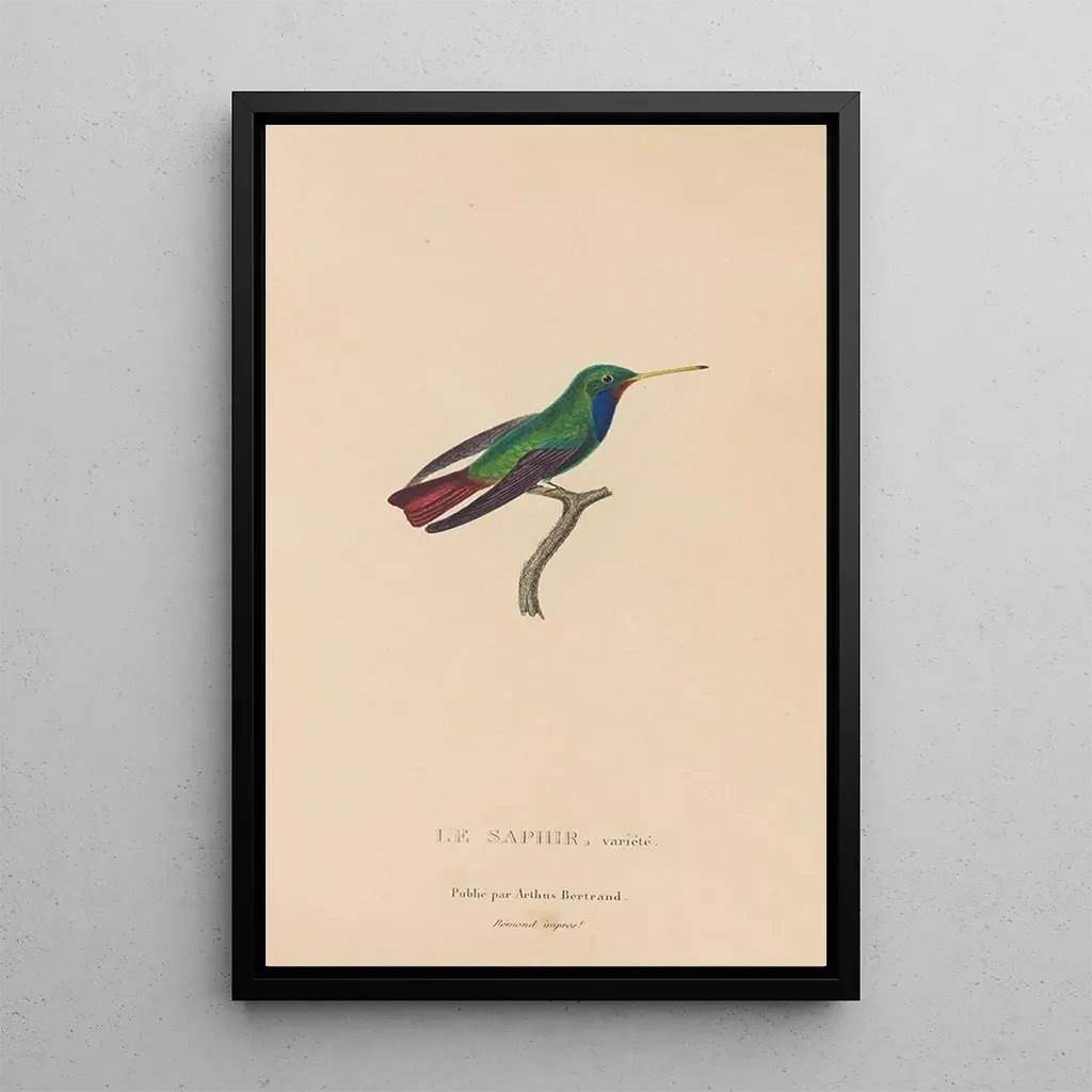Kunsttrykket Histoire naturelle des oiseaux-mouches Pl58 er et dekorativt stykke, der passer perfekt ind i forskellige rum, uanset om det er en stue, et kontor eller et soveværelse. Dets trykkvalitet og trofasthed over for de originale farver gør det til et ideelt valg for kunst- og naturentusiaster. Det æstetiske tiltrækningskraft ved dette lærred ligger i dets evne til at tilføre et strejf af friskhed og lethed til dit hjem. Ved at vælge dette værk, vælger du en dekoration, der vækker beundring og inviterer til fordybelse, samtidig med at den fejrer skønheden i den naturlige verden.