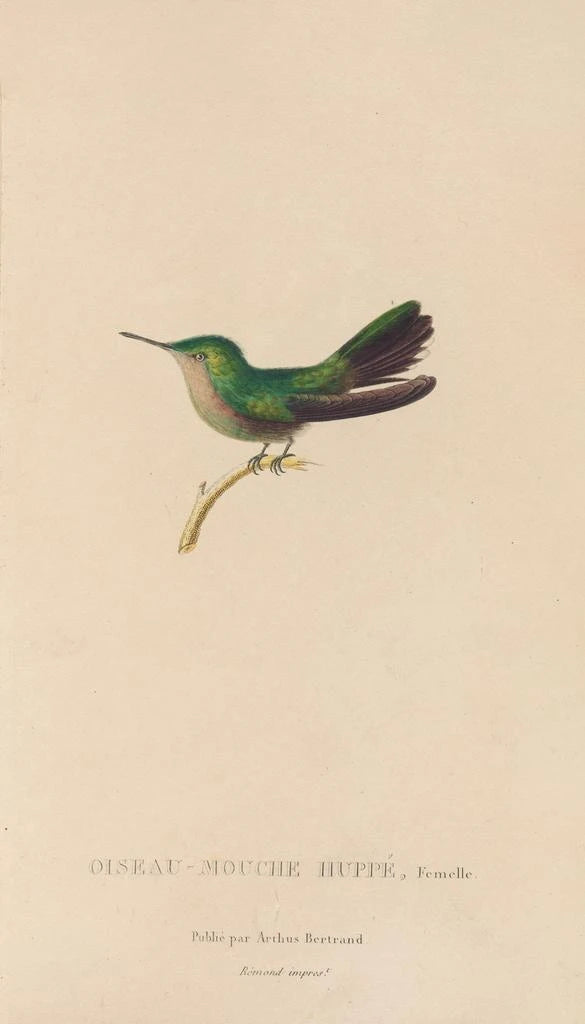 René Primevère Lesson, en ikonisk figur fra det 19. århundrede, formåede at forene sine passioner for ornitologi og kunst. Som naturalist dedikerede han sit liv til studiet af fugle, men det er gennem sine illustrationer, at hans arv lever videre. "Histoire naturelle des oiseaux-mouches Pl32" vidner om hans talent for at fange skønheden og mangfoldigheden af fuglearter. Påvirket af tidens videnskabelige fremskridt, bidrog han til at øge offentlighedens bevidsthed om biodiversitetens rigdom. Hans værker forbliver referencepunkter for kunst- og naturentusiaster, der illustrerer harmonien mellem videnskab og æstetik.
