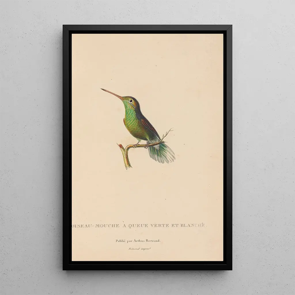 René Primevère Lesson, fransk naturalist og illustratør, markerede det 19. århundrede med sine bidrag til ornitologi og kunst. Påvirket af de videnskabelige opdagelser i sin tid, formåede han at fange essensen af fuglearter med bemærkelsesværdig præcision. Hans illustrationer, herunder Histoire naturelle des oiseaux-mouches Pl61, er resultatet af omhyggelig observation og en passion for naturen. Lesson spillede en nøglerolle i at øge bevidstheden om biodiversitet, og hans værker fortsætter med at inspirere kunst- og naturvidenskabsentusiaster. Hans arv lever videre gennem hans illustrationer, der kombinerer videnskabelig stringens med kunstnerisk følsomhed.