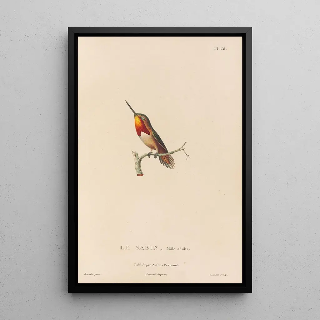 Kunsttrykket Histoire naturelle des oiseaux-mouches Pl67 er et ideelt valg til at forskønne dit hjem, uanset om det er i stuen, på kontoret eller i soveværelset. Dets trykkvalitet og trofasthed mod de originale farver gør det til et centralt stykke, der fanger blikket og vækker beundring. Ved at integrere dette billede i din indretning tilføjer du et strejf af natur og sofistikation til dit rum. Den æstetiske tiltrækningskraft ved dette lærred ligger i dets evne til at fremkalde lethed og skønhed i fuglene, hvilket skaber en beroligende og inspirerende atmosfære.