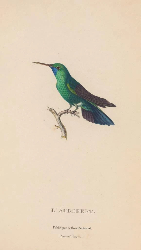 René Primevère Lesson, naturforsker og ornitolog fra det 19. århundrede, formåede at forene videnskab og kunst i sine værker. Aktiv i en periode, hvor fuglestudier oplevede en opblomstring, blev han påvirket af sine samtidiges opdagelser og af botaniske og zoologiske ekspeditioner. Hans arbejde har bidraget til at berige viden om fuglearter, samtidig med at det præsenterer dem på en kunstnerisk måde. Lesson formåede at fange essensen af disse fugle-sværmere, hvilket gør hans kunsttryk til både videnskabelige og æstetiske referencer. Hans arv består, hvilket vidner om vigtigheden af omhyggelig observation og troværdig gengivelse af naturen.