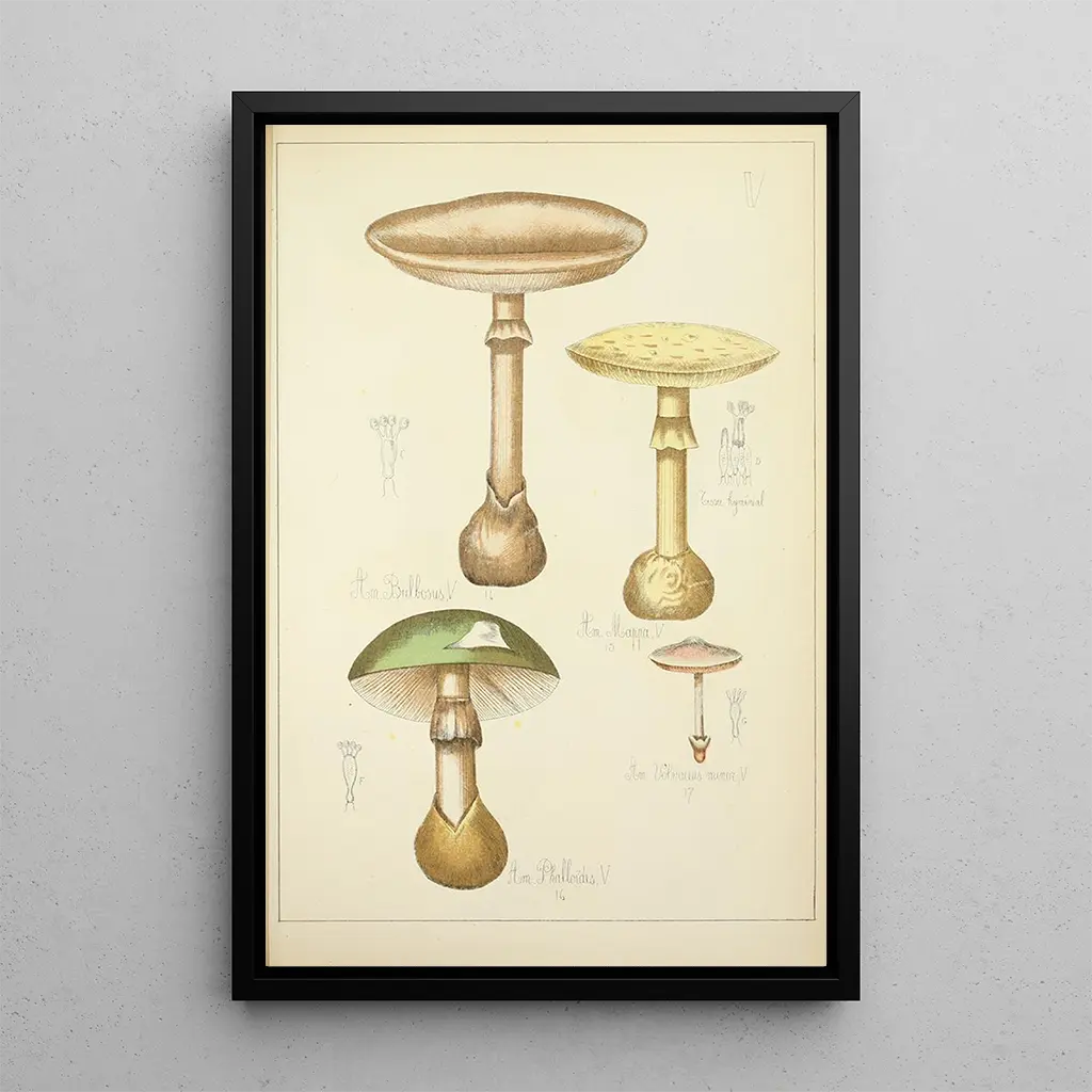 Dette kunsttryk "Histoire naturelle des champignons Pl05" er et ideelt valg til at berige din indretning. Uanset om det er i et arbejdsrum, en stue eller et soveværelse, tilføjer dette lærred et strejf af originalitet og sofistikeret elegance. Dets trykkvalitet sikrer en bemærkelsesværdig trofasthed til detaljerne i det originale værk, samtidig med at det tilbyder en fængslende æstetik. De livlige farver og de fascinerende former i dette kunsttryk gør det til et dekorativt element, der tiltrækker opmærksomhed og vækker interesse. Ved at vælge dette værk tilføjer du en kunstnerisk og naturlig dimension til dit miljø, samtidig med at du fejrer skønheden af svampe.