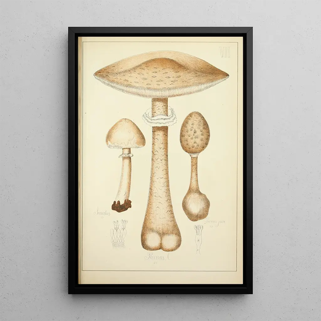 Kunsttrykket af "Histoire naturelle des champignons Pl07" er et klogt dekorativt valg til at berige dit opholdsrum. Uanset om det er i en stue, et kontor eller et soveværelse, tilføjer dette billede et strejf af elegance og nysgerrighed. Dets trykkvalitet og farvernes trofasthed gør det til et centralt element, der fanger blikket og vækker interesse. Ved at integrere dette lærred i din indretning, forbedrer du ikke blot dit hjem, men giver også et vindue til naturens skønhed, der inviterer til refleksion og forundring.