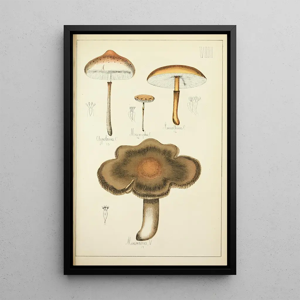 Kunsttrykket af "Histoire naturelle des champignons Pl08" er et dekorativt element, der vil berige ethvert rum, uanset om det er en stue, et kontor eller et soveværelse. Dets trykkvalitet sikrer en trofast gengivelse af farver og detaljer i originalen, hvilket giver en æstetisk tiltrækning, der er uden tvivl. Ved at integrere dette lærred i dit hjem tilføjer du et strejf af natur og videnskab, samtidig med at du vækker nysgerrighed og beundring hos dine gæster. Dette værk er ikke blot et dekorativt element, men også et udgangspunkt for berigende samtaler om botanik og kunst.