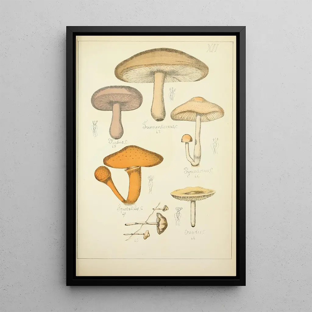 Kunsttrykket af "Histoire naturelle des champignons Pl12" er et ideelt dekorativt valg for dem, der ønsker at tilføje et strejf af originalitet til deres indretning. Uanset om det er i en stue, et kontor eller et soveværelse, tiltrækker dette lærred opmærksomhed og vækker interesse. Dets trykkvalitet sikrer en bemærkelsesværdig trofasthed til detaljerne og farverne i det originale værk, hvilket garanterer en varig æstetisk appel. Ved at integrere dette kunsttryk i din indretning, behøver du ikke blot at forskønne dit rum, men inviterer også en del af naturen ind, hvilket skaber en varm og inspirerende atmosfære.