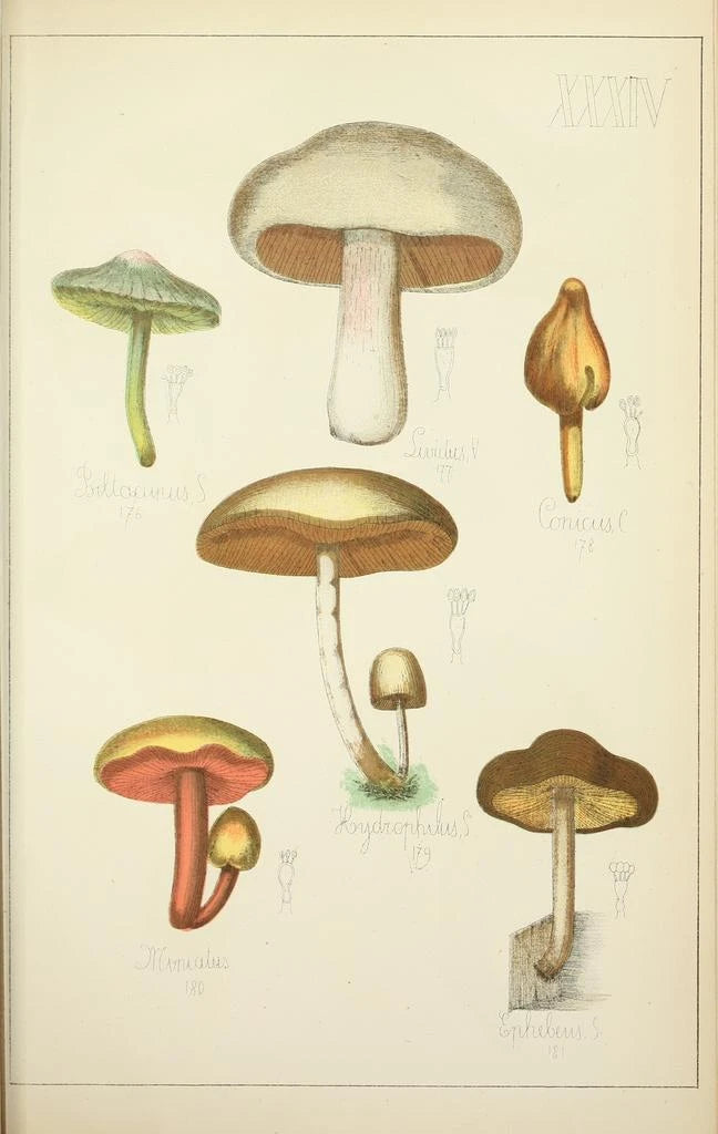 Histoire naturelle des champignons Pl34 : en kunsttryk af former og farver