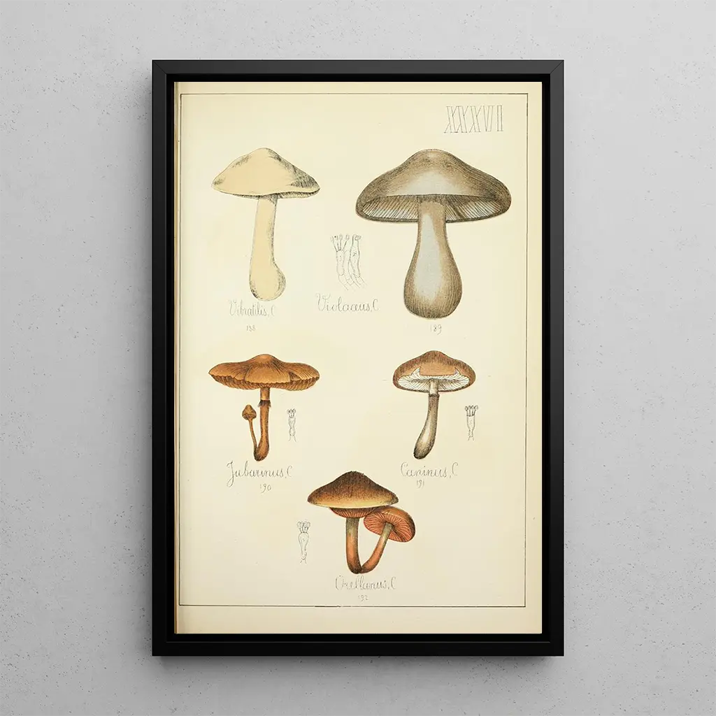 Kunsttrykket af "Histoire naturelle des champignons Pl36" er et ideelt dekorativt stykke til at berige stemningen i en stue, et kontor eller et soveværelse. Dets trykkvalitet sikrer en bemærkelsesværdig trofasthed over for de originale detaljer, hvilket gør det muligt at værdsætte hver nuance og tekstur af svampene. Ved at integrere dette lærred i din indretning tilføjer du et strejf af elegance og viden til dit rum. Desuden gør dets æstetiske tiltrækningskraft og det naturlige tema det til et fremragende samtaleemne, samtidig med at det fejrer biodiversitetens skønhed.