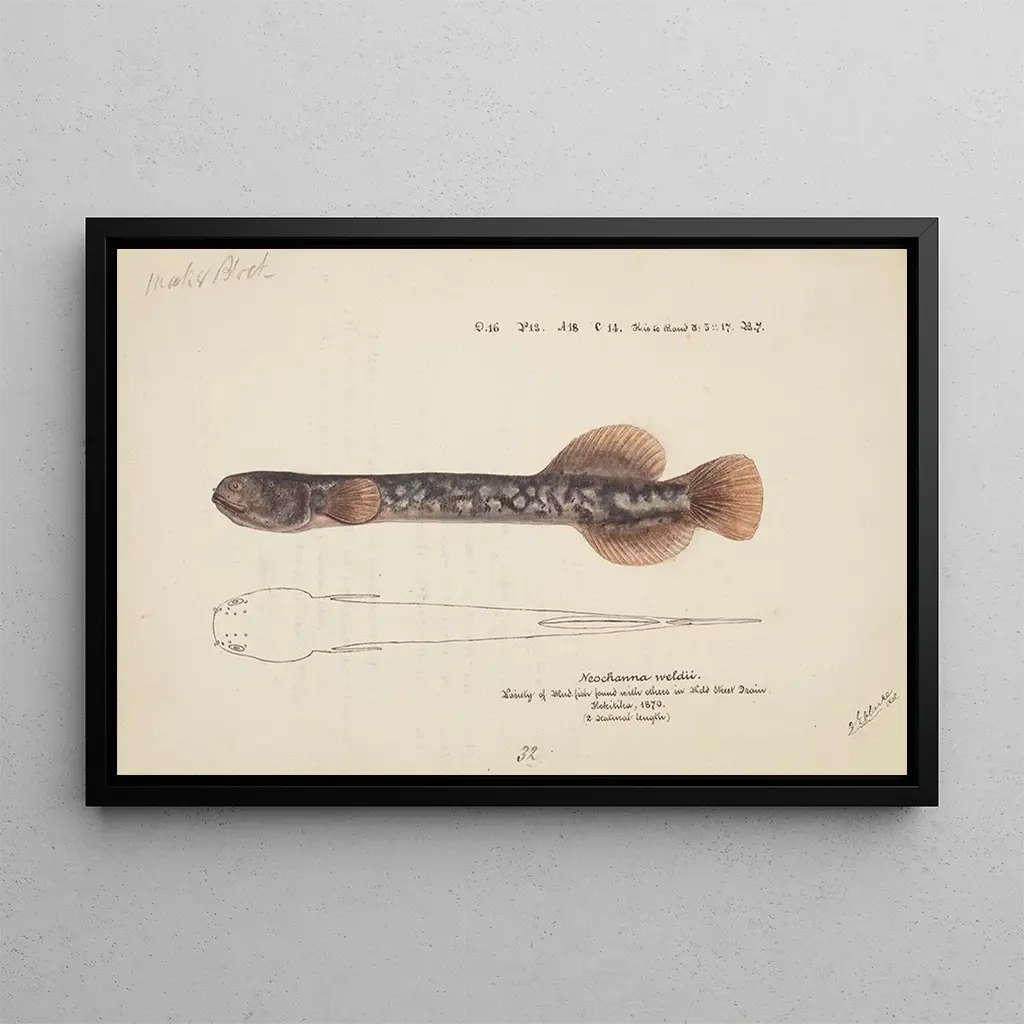 Neochanna apoda apoda : et kig på den akvatiske skønhed Kunsttrykket af Neochanna apoda apoda, værk af Frank Edward Clarke, fører os ind i en fascinerende akvatisk verden. Dette maleri, rigt på detaljer, fanger ynde og elegance af denne endemiske fisk fra New Zealand. De levende farver og de delikate nuancer af blå og grøn fremkalder klarheden i de krystalklare vande, hvor denne art lever. Clarkes teknik, der kombinerer akvarel og tegning, skaber en rolig og kontemplativ atmosfære, der inviterer betragteren til at beundre naturens undervands skønhed. Hvert penselstrøg afslører skællets finesse og bevægelsens flydende karakter, hvilket hylder den enestående biodiversitet på vores planet. Frank Edward Clarke : en pioner inden for naturalistisk illustration Frank Edward Clarke er anerkendt som en kunstner og naturalistisk illustratør fra begyndelsen af det 20. århundrede. Hans karriere, præget af en passion for dyre- og planteliv, har ført til skabelsen af mange værker, der fejrer biodiversitetens rigdom. Påvirket af de videnskabelige opdagelser i sin tid, formåede Clarke at forene kunst og videnskab, hvilket gjorde hans illustrationer både præcise og æstetiske. Hans arbejde med Neochanna apoda apoda vidner om hans engagement i at øge offentlighedens bevidsthed om beskyttelsen af truede arter. Ved at skildre ofte ukendte skabninger har han efterladt en varig arv inden for naturalistisk kunst. En dekorativ tilføjelse med mange fordele Kunsttrykket af Neochanna apoda apoda udgør et ideelt dekorativt stykke til forskellige rum såsom stuen, kontoret eller endda soveværelset. Dets trykkvalitet og trofasthed mod de oprindelige detaljer gør det til et attraktivt valg for kunst- og naturentusiaster. Ved at integrere dette maleri i dit hjem tilføjer du et strejf af elegance og ro, samtidig med at du skaber samtaleemner omkring biodiversitet. Dette lærred, både æstetisk og oplysende, vil berige din indretning og samtidig fejre skønheden i akvatiske økosystemer.