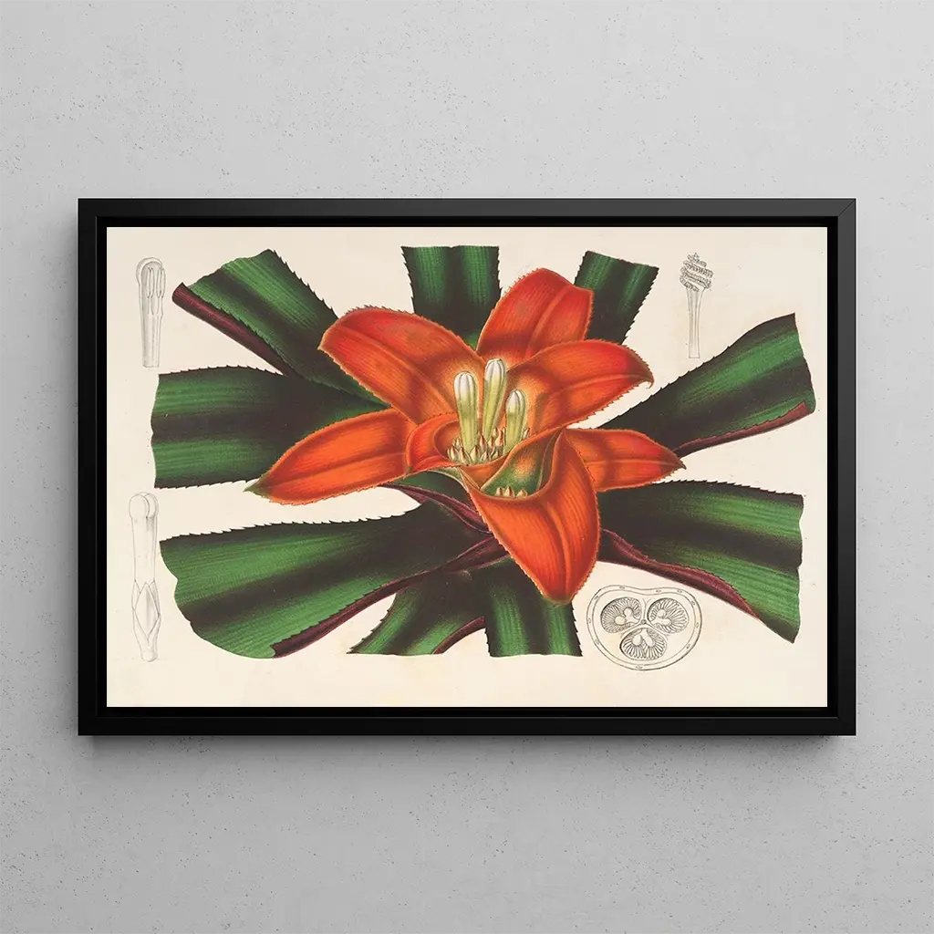 Det kunsttryk af Nidularium Innocentii, værk af Charles Antoine Lemaire, er en sand hyldest til naturen. Dette kunsttryk fremhæver skønheden af eksotiske planter med livlige farver og en harmonisk komposition. Nuancer af grønt, rødt og gult blander sig for at skabe en levende og beroligende atmosfære. Lemaires teknik, der kombinerer præcision og følsomhed, gør det muligt at fange essensen af denne tropiske plante. Hvert detalje er omhyggeligt gengivet, hvilket inviterer betragteren til at dykke ned i en rig og fascinerende planteverden.