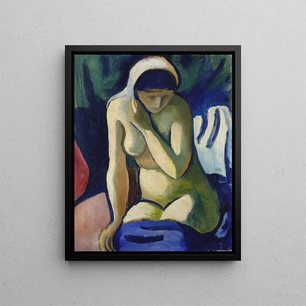 Kunsttryk | Nøgen pige med tørklæde - August Macke